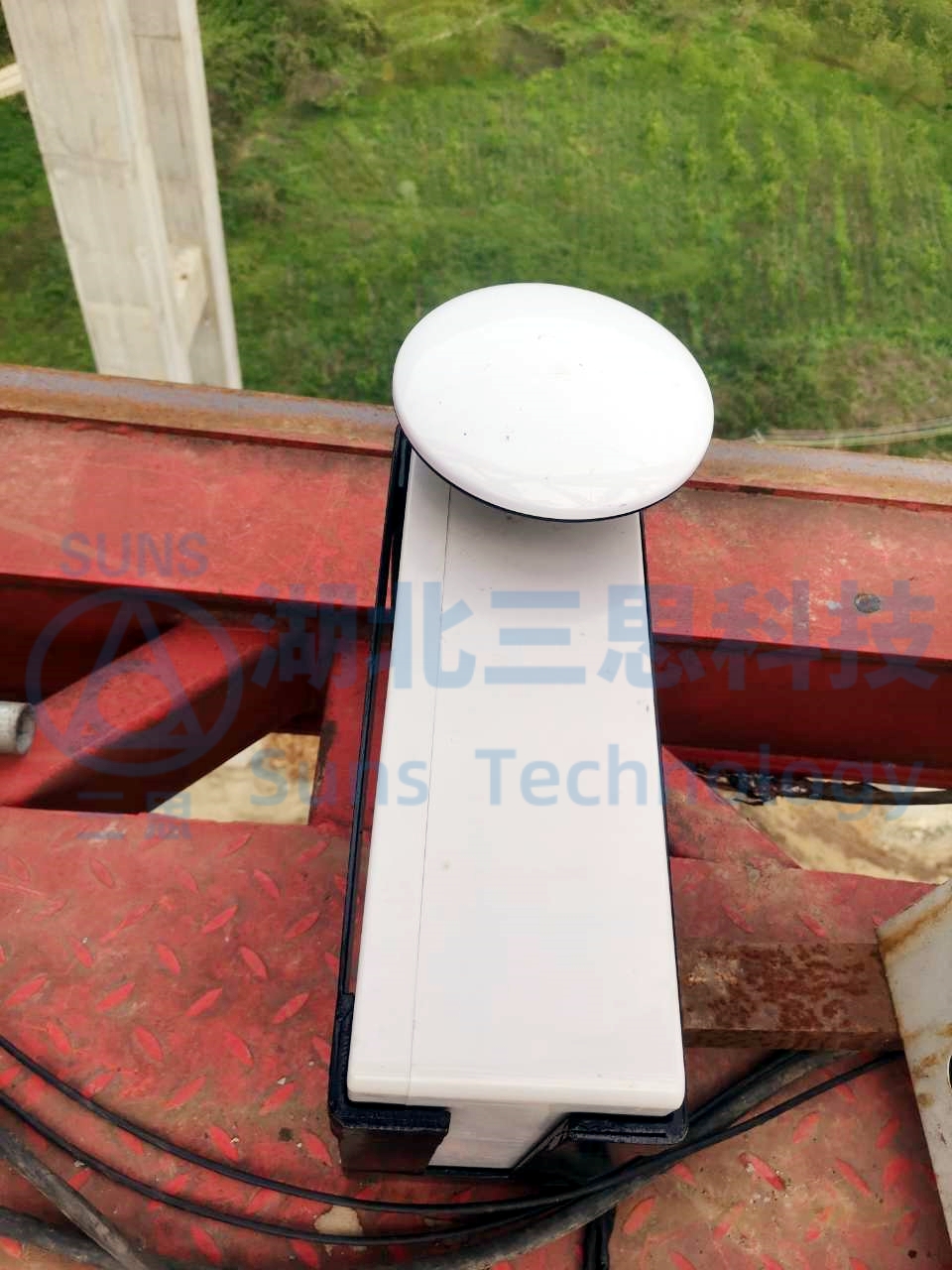 該項目采用的是架橋機安全監(jiān)控管理系統(tǒng)帶智能監(jiān)測系統(tǒng),通過在設備上安裝GNSS北斗定位基站來實時監(jiān)測架橋機前后高差及平行狀態(tài)。