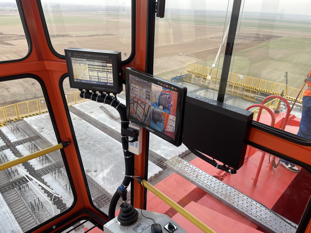 桅桿吊起升卷揚(yáng)、變幅卷揚(yáng)各裝1路攝像頭,用于監(jiān)控現(xiàn)場(chǎng)電機(jī)卷揚(yáng);桅桿吊桿頭裝一路球機(jī),用于監(jiān)控吊裝區(qū)域。監(jiān)控設(shè)備的視頻監(jiān)控顯示器放置于司機(jī)室內(nèi),可以讓駕駛員全方位掌握桅桿吊的實(shí)時(shí)運(yùn)行狀況,提高了操作的安全性。