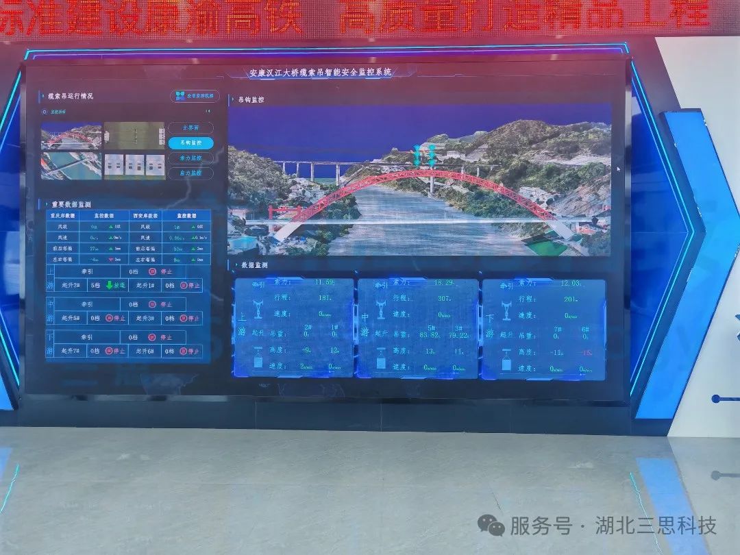 安康漢江大橋全長(zhǎng)367.9米,采用鋼混結(jié)合梁結(jié)構(gòu),主梁設(shè)計(jì)采用了半漂浮約束體系。該橋跨越G211國(guó)道、漢江和S207省道,是全國(guó)高速鐵路單孔跨度最大的時(shí)速350公里中承式鋼管混凝土拱橋。大橋的主拱跨度達(dá)到290米,共有52根樁基礎(chǔ),4根拱座斜樁,2個(gè)分離式拱座,6個(gè)墩臺(tái),拱肋分為38個(gè)節(jié)段,在拼裝平臺(tái)預(yù)拼裝后,使用150噸的龍門吊及平板運(yùn)輸車運(yùn)送至橋位,通過(guò)兩岸的纜索吊吊裝施工。在施工過(guò)程中,項(xiàng)目部成立高速鐵路1-290米中承式鋼管混凝土提籃拱橋施工關(guān)鍵技術(shù)研究小組,加強(qiáng)與科研機(jī)構(gòu)和高校的合作,通過(guò)理論分析、數(shù)值模擬和現(xiàn)場(chǎng)試驗(yàn)等多種方式,不斷優(yōu)化施工方案,組織專家進(jìn)行評(píng)審論證,提高施工效率和質(zhì)量。積極利用移動(dòng)互聯(lián)網(wǎng)、三維GIS、視頻監(jiān)控、物聯(lián)網(wǎng)、BIM、大數(shù)據(jù)、智能化等技術(shù)建設(shè)基于BIM的數(shù)字化工程管控平臺(tái),為施工項(xiàng)目安全生產(chǎn)的集約化、扁平化和標(biāo)準(zhǔn)化管理提供信息化支撐,通過(guò)不良地質(zhì)自動(dòng)監(jiān)測(cè)設(shè)備、纜索吊安全監(jiān)控設(shè)備、150噸龍門吊安全監(jiān)控設(shè)備等外鏈系統(tǒng)、智慧工地的構(gòu)建,實(shí)現(xiàn)現(xiàn)場(chǎng)檢查與在線監(jiān)控相結(jié)合,提升施工項(xiàng)目安全生產(chǎn)的總體管控能力。