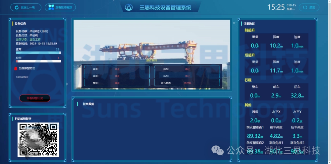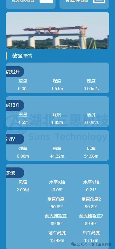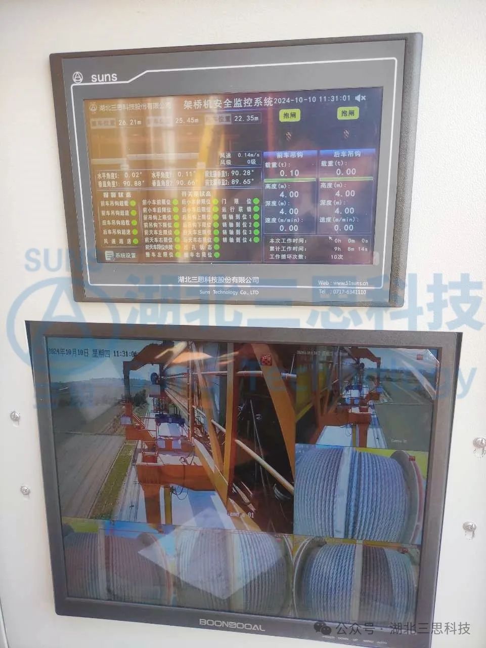 本次由湖北三思科技參與的起重機(jī)安全監(jiān)控系統(tǒng)的設(shè)計(jì)、安裝的設(shè)備是一臺(tái)1000噸的單導(dǎo)梁架橋機(jī),在常規(guī)架橋機(jī)安全管理系統(tǒng)的功能上,本系統(tǒng)增加了重大安全隱患報(bào)警、掃碼解鎖等功能,屬于行業(yè)類首創(chuàng)!